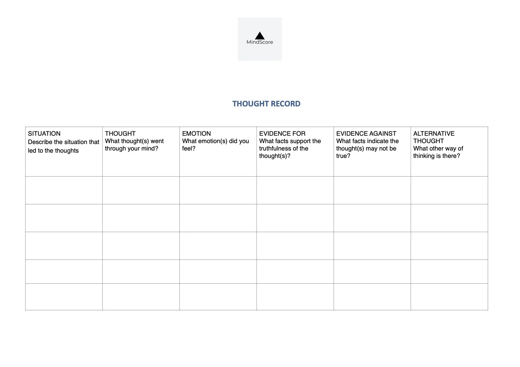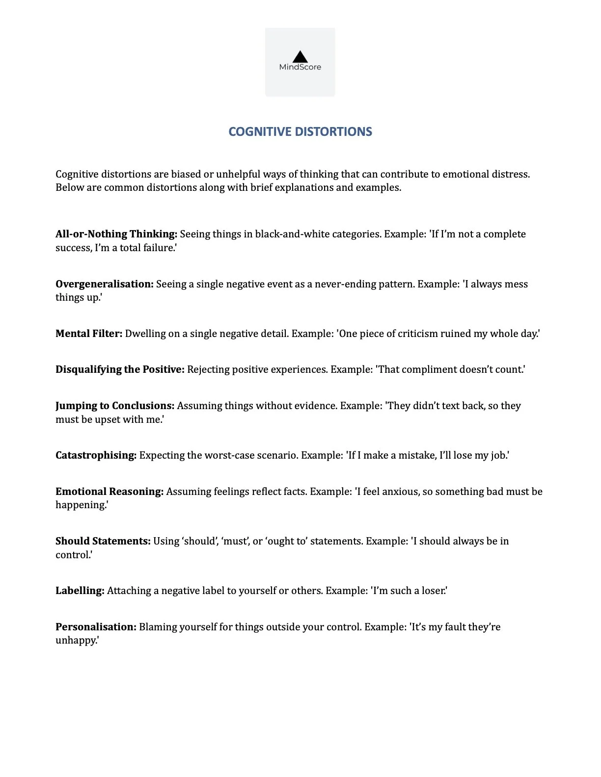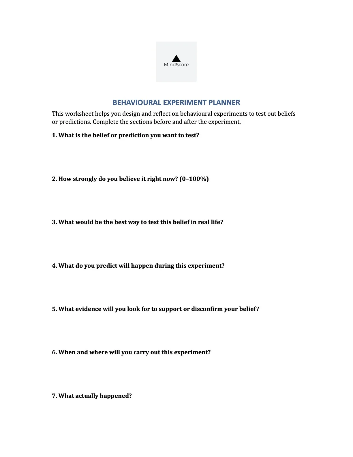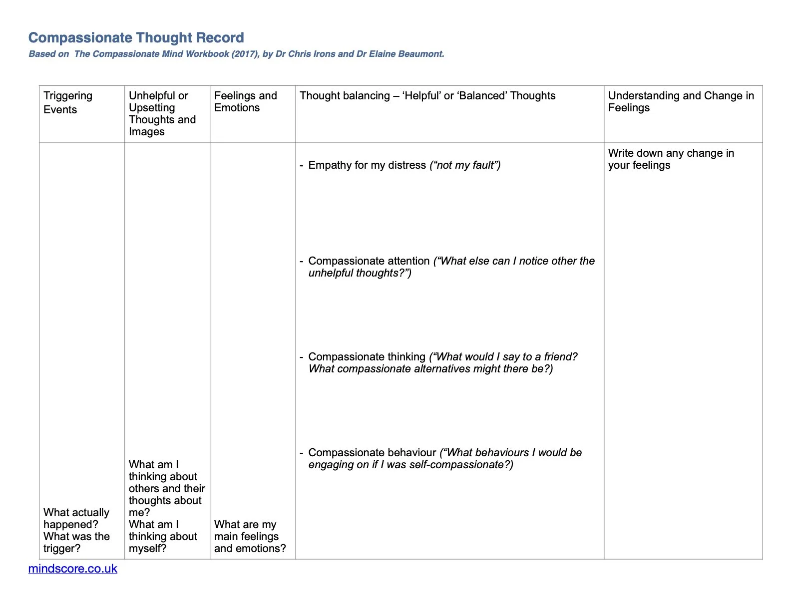 Below you'll find downloadable CBT worksheets, clinical questionnaires, and psychological tools used in therapy. These materials are designed to support your progress between sessions and help you apply evidence-based strategies from Cognitive Behavioural Therapy (CBT), ACT, and Compassion Focused Therapy to real-life challenges.